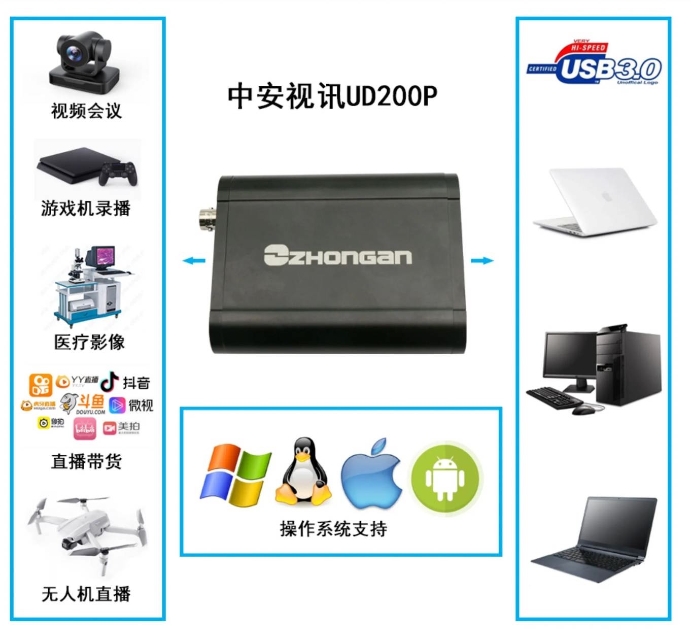 UVC免驅支持 | 符合UVC (USB video class), UAC(USB audio class)規范 |