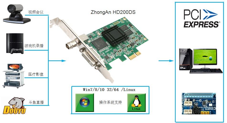 產(chǎn)品簡(jiǎn)介 | HD200DS一款支持全高清1080P 60HZ高清視頻采集卡,板卡采用了高速的PCI-E 2.0 X1接口,